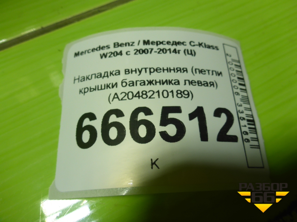 Накладка внутренняя (петли крышки багажника левая) (A2048210189) для Mercedes Benz C-Klass W204 с 2007-2014г (Ц) в Краснодаре