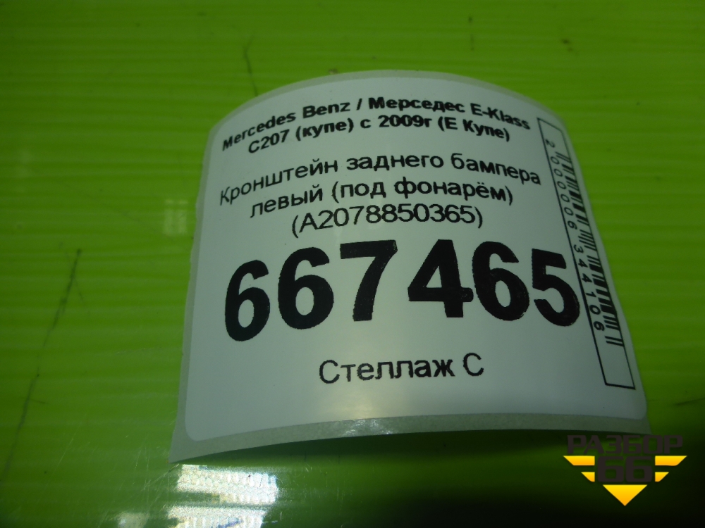 Кронштейн заднего бампера левый (под фонарём) (A2078850365) для Mercedes Benz E-Klass C207 (купе) с 2009г (Е Купе) в Краснодаре
