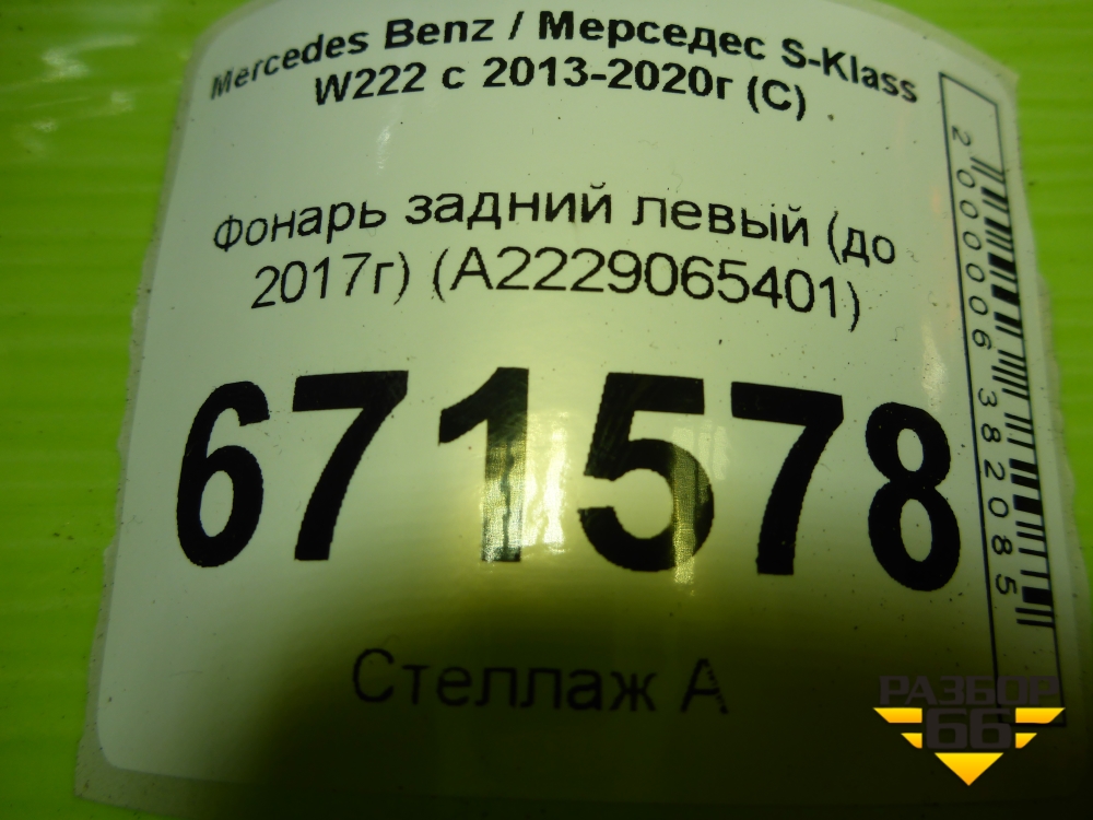 Фонарь задний левый (до 2017г Led) (A2229065401) для Mercedes Benz S-Klass W222 с 2013-2020г (С) в Краснодаре