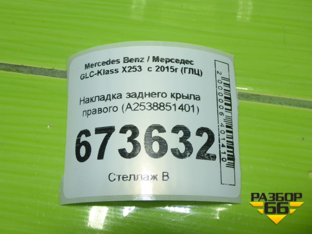 Накладка заднего крыла правого (A2538851401) для Mercedes Benz GLC-Klass X253 с 2015г (ГЛЦ) в Краснодаре