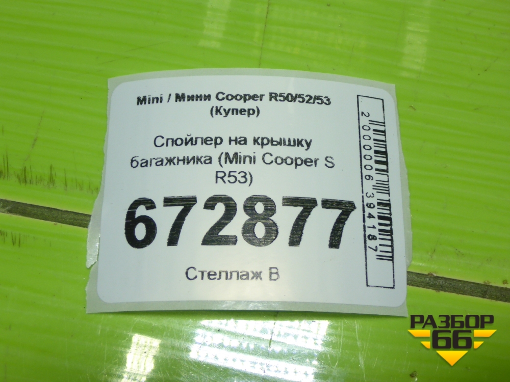 Спойлер на крышку багажника (Mini Cooper S R53) для Mini Cooper R50/52/53 с 2001-2006г (Купер) в Краснодаре