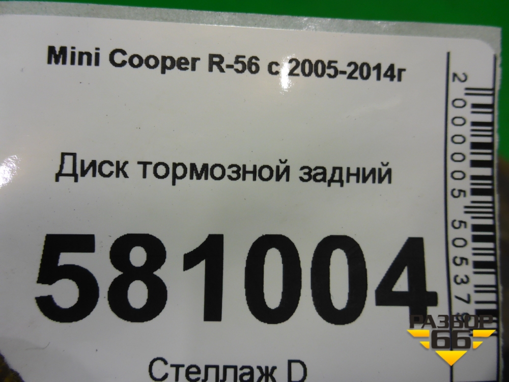 Диск тормозной задний (1503070) для Mini Cooper R56 с 2005-2014г (Купер) в Краснодаре
