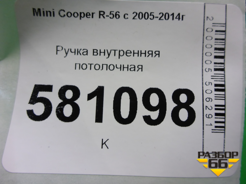 Ручка внутренняя потолочная (передняя) (51162754167) для Mini Cooper R56 с 2005-2014г (Купер) в Краснодаре