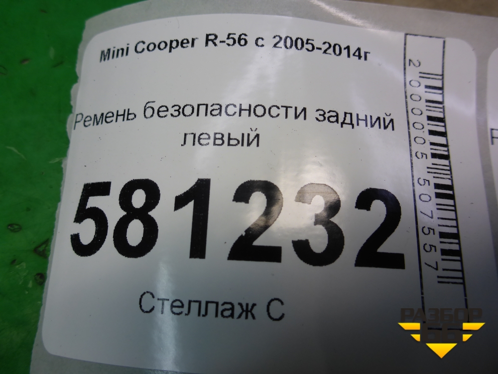 Ремень безопасности задний левый (601030000E) для Mini Cooper R56 с 2005-2014г (Купер) в Краснодаре