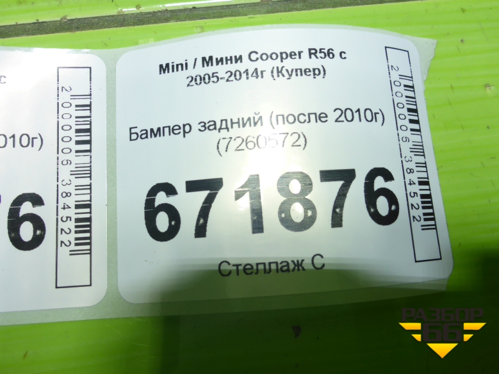 Бампер задний (после 2010г) (7260572) для Mini Cooper R56 с 2005-2014г (Купер) в Краснодаре