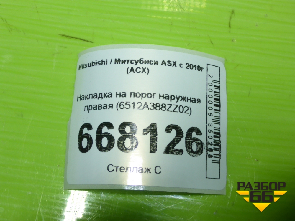 Накладка на порог наружная правая (6512A388ZZ02) для Mitsubishi ASX с 2010г (АСХ) в Краснодаре