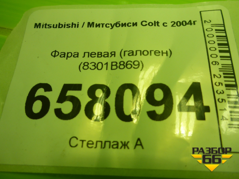 Фара левая (галоген) (8301B869) для Mitsubishi Colt с 2004г (Кольт) в Краснодаре