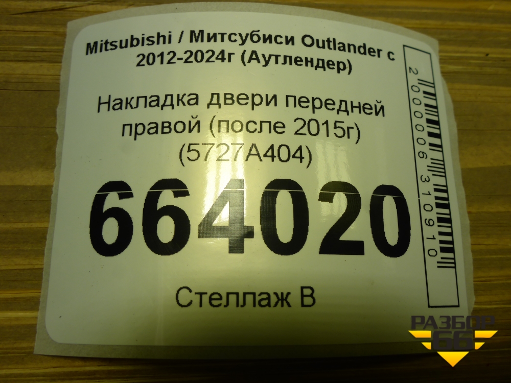 Накладка двери передней правой (после 2015г) (5727A404) для Mitsubishi Outlander с 2012-2024г (Аутлендер) в Краснодаре