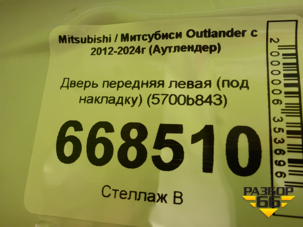 Дверь передняя левая (под накладку) (5700b843) для Mitsubishi Outlander с 2012-2024г (Аутлендер) в Краснодаре