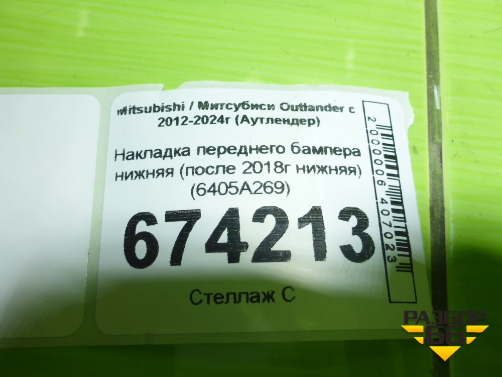 Накладка переднего бампера нижняя (после 2018г нижняя) (6405A269) для Mitsubishi Outlander с 2012-2024г (Аутлендер) в Краснодаре