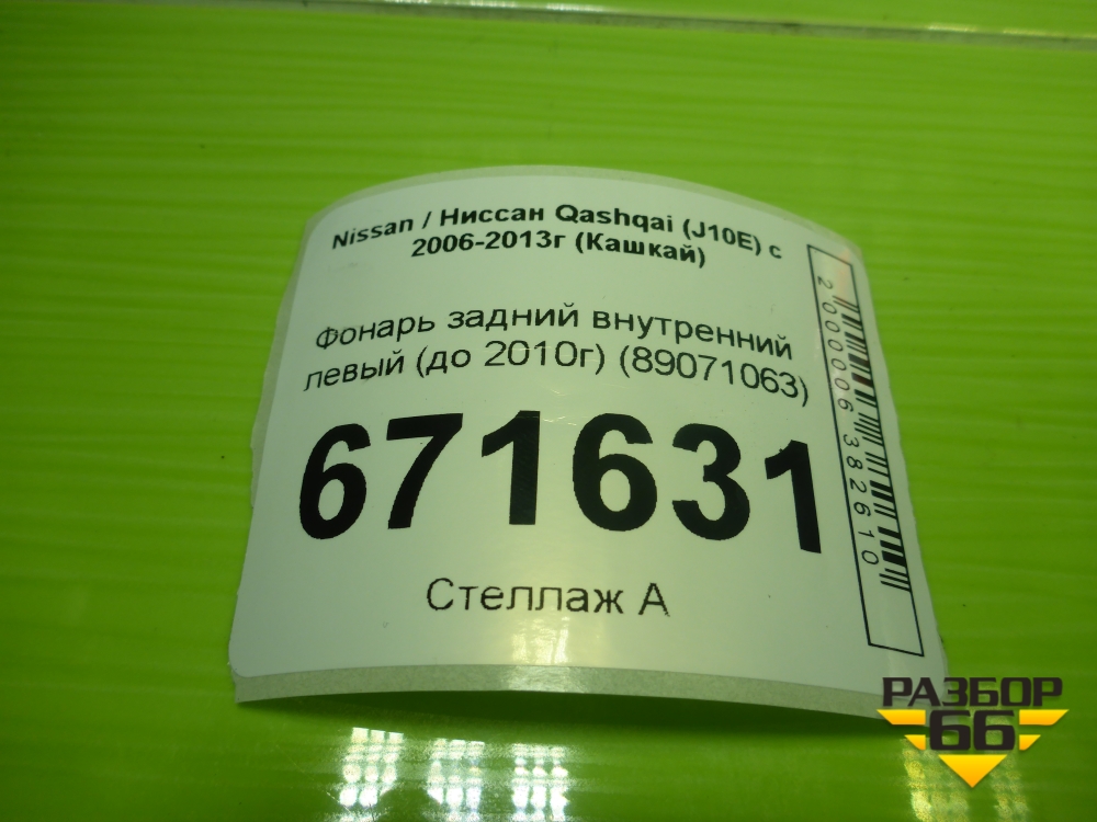 Фонарь задний внутренний левый (до 2010г) (89071063) для Nissan Qashqai (J10E) с 2006-2013г (Кашкай) в Краснодаре