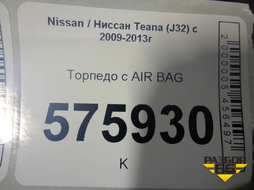 Торпедо с AIR BAG (правый руль) для Nissan Teana (J32) с 2008-2013г (Теана) в Краснодаре