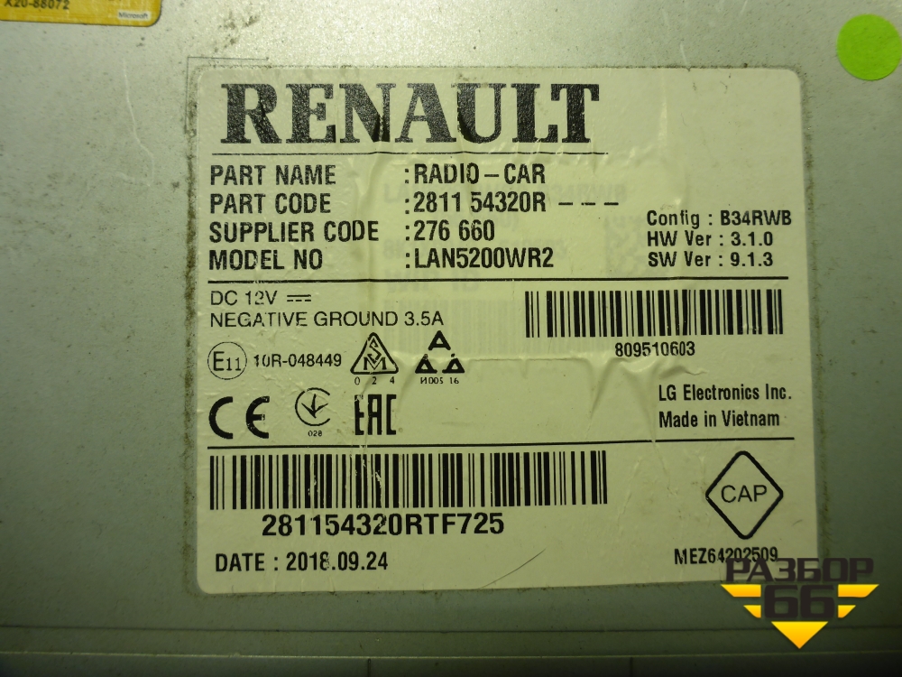 Магнитола (281154320R) для Nissan Terrano с 2014г (Терано) в Краснодаре