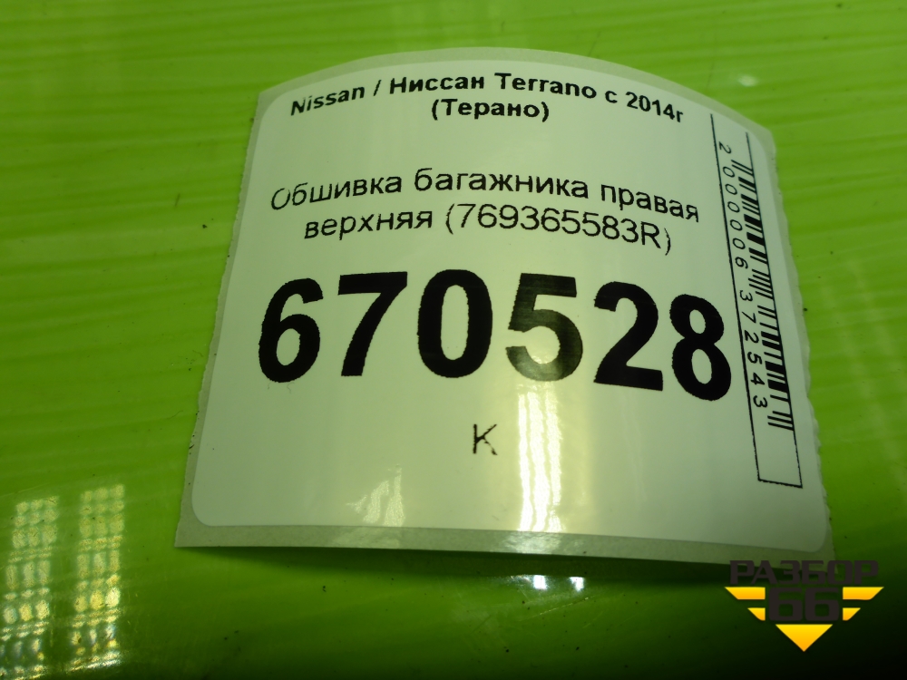 Обшивка багажника правая верхняя (769365583R) для Nissan Terrano с 2014г (Терано) в Краснодаре