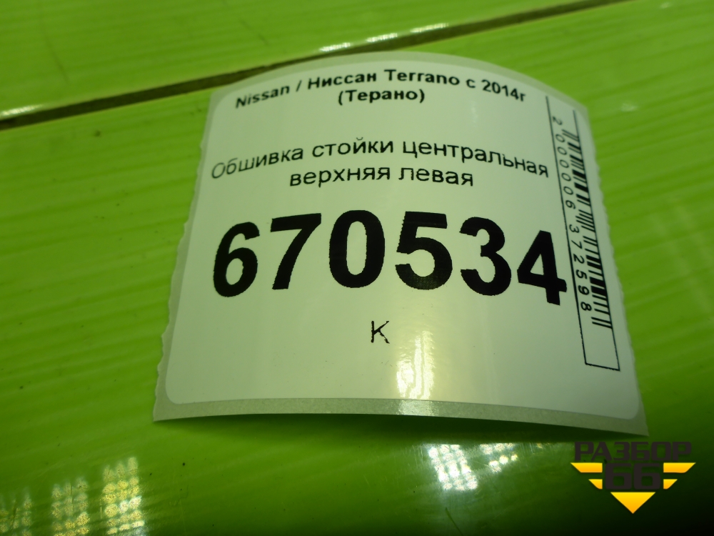 Обшивка стойки центральная верхняя левая (8200732342) для Nissan Terrano с 2014г (Терано) в Краснодаре