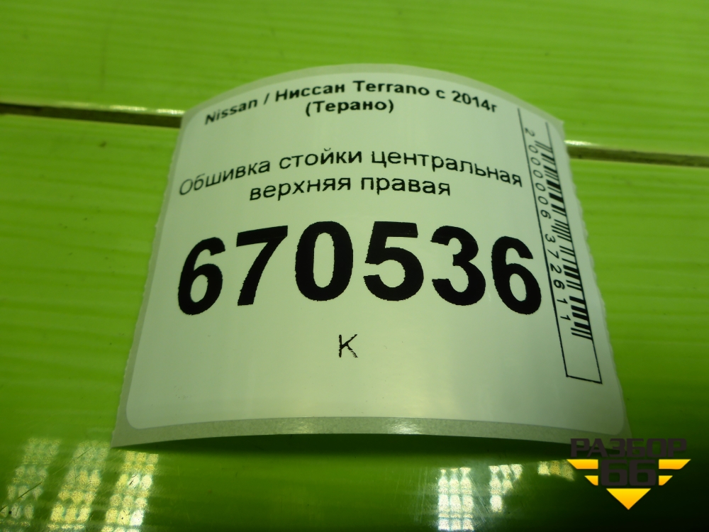 Обшивка стойки центральная верхняя правая (8200732344) для Nissan Terrano с 2014г (Терано) в Краснодаре