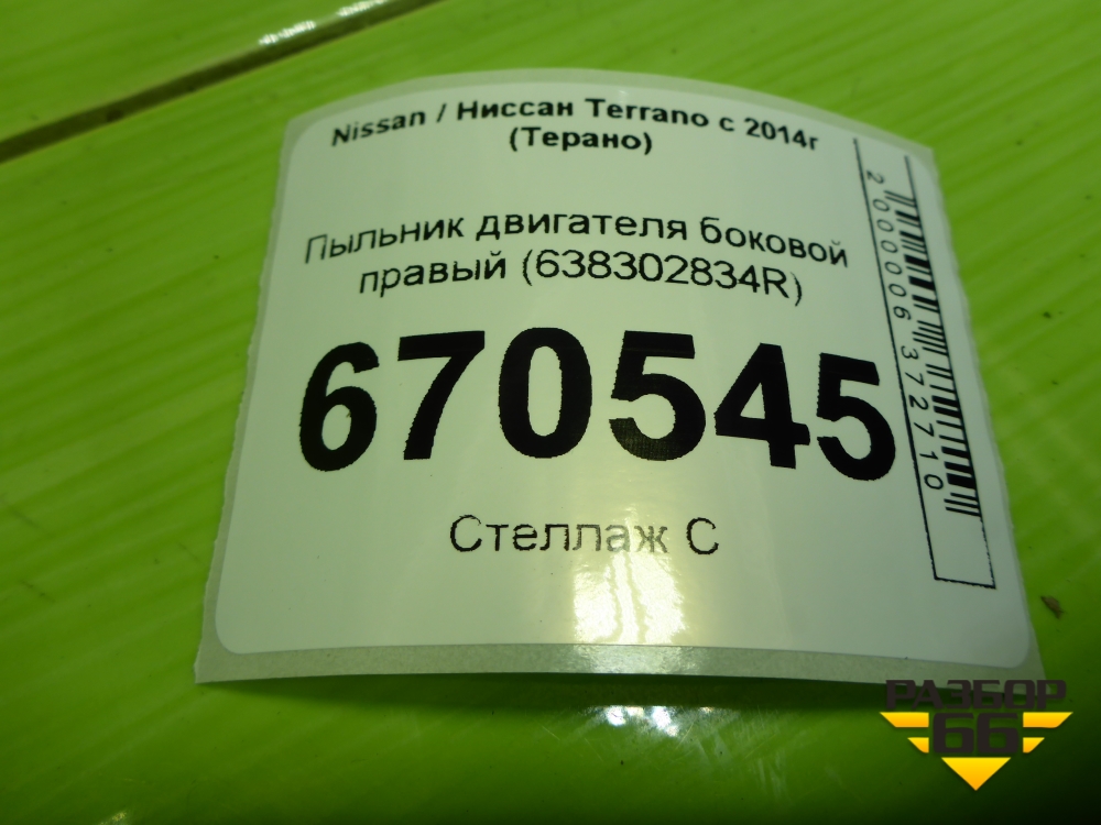 Пыльник двигателя боковой правый (638302834R) для Nissan Terrano с 2014г (Терано) в Краснодаре