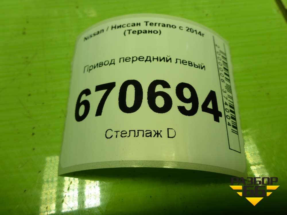 Привод передний левый (шлиц наруж-25,внутр-26) (391015061R) для Nissan Terrano с 2014г (Терано) в Краснодаре