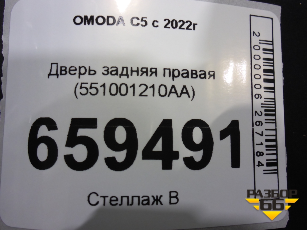 Дверь задняя правая (551001210AA) для OMODA C5 с 2022г (Ц5) в Краснодаре