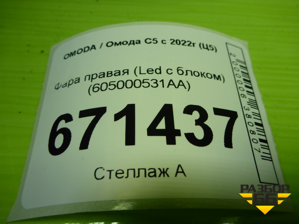 Фара правая (Led с блоком) (605000531AA) для OMODA C5 с 2022г (Ц5) в Краснодаре