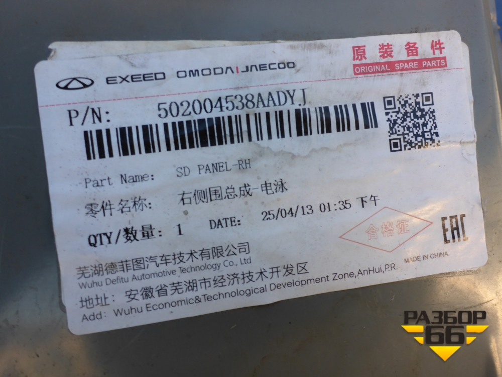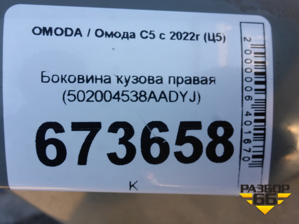 Боковина кузова правая (502004538AADYJ) для OMODA C5 с 2022г (Ц5) в Краснодаре