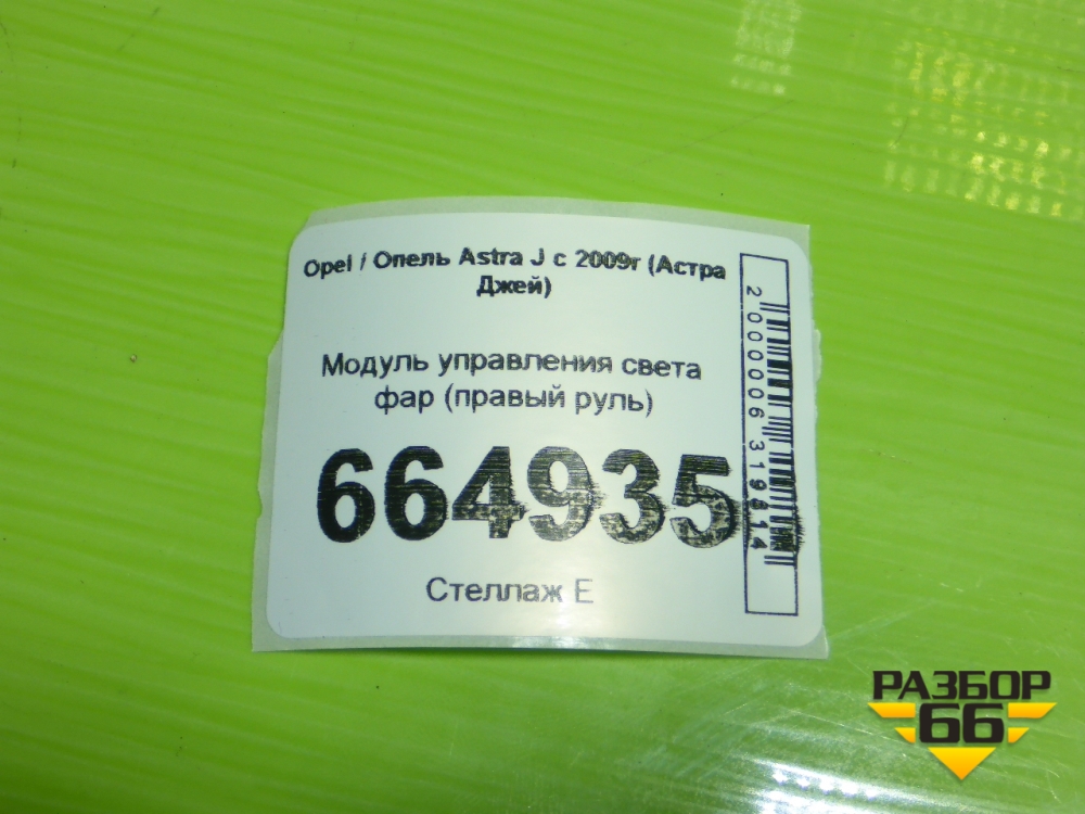 Модуль управления света фар (правый руль) для Opel Astra J с 2009г (Астра Джей) в Краснодаре