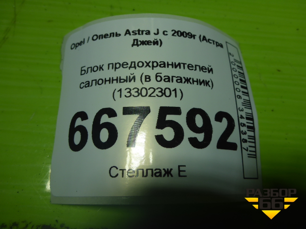 Блок предохранителей салонный (в багажник) (13302301) для Opel Astra J с 2009г (Астра Джей) в Краснодаре