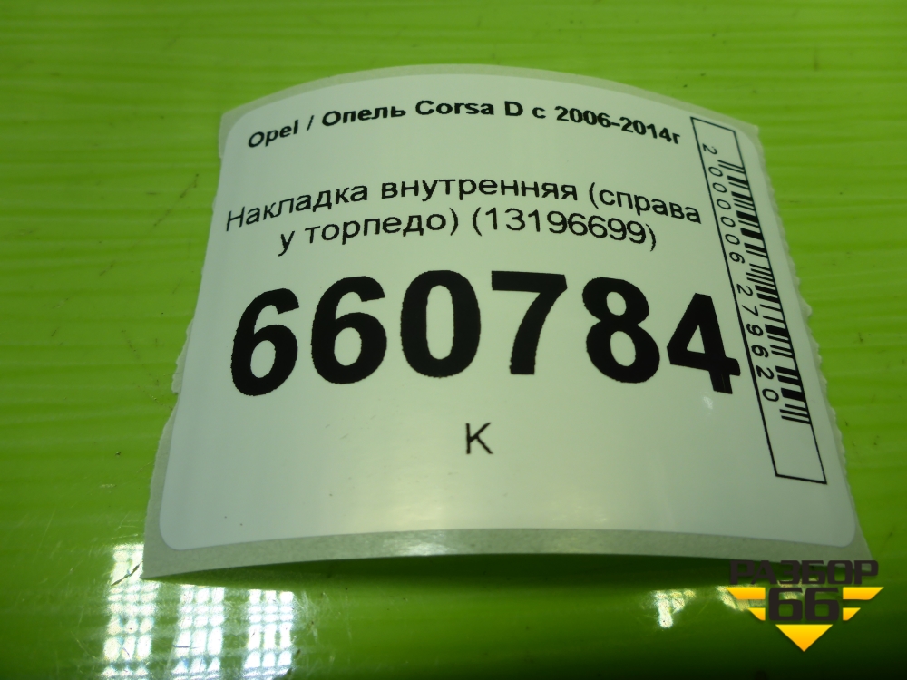 Накладка внутренняя (справа у торпедо) (13196699) для Opel Corsa D с 2006-2014г (Корса Д) в Краснодаре
