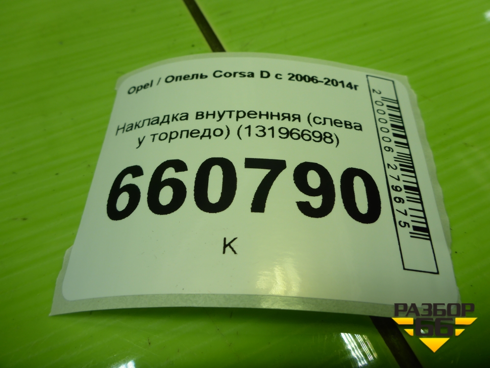 Накладка внутренняя (слева у торпедо) (13196698) для Opel Corsa D с 2006-2014г (Корса Д) в Краснодаре
