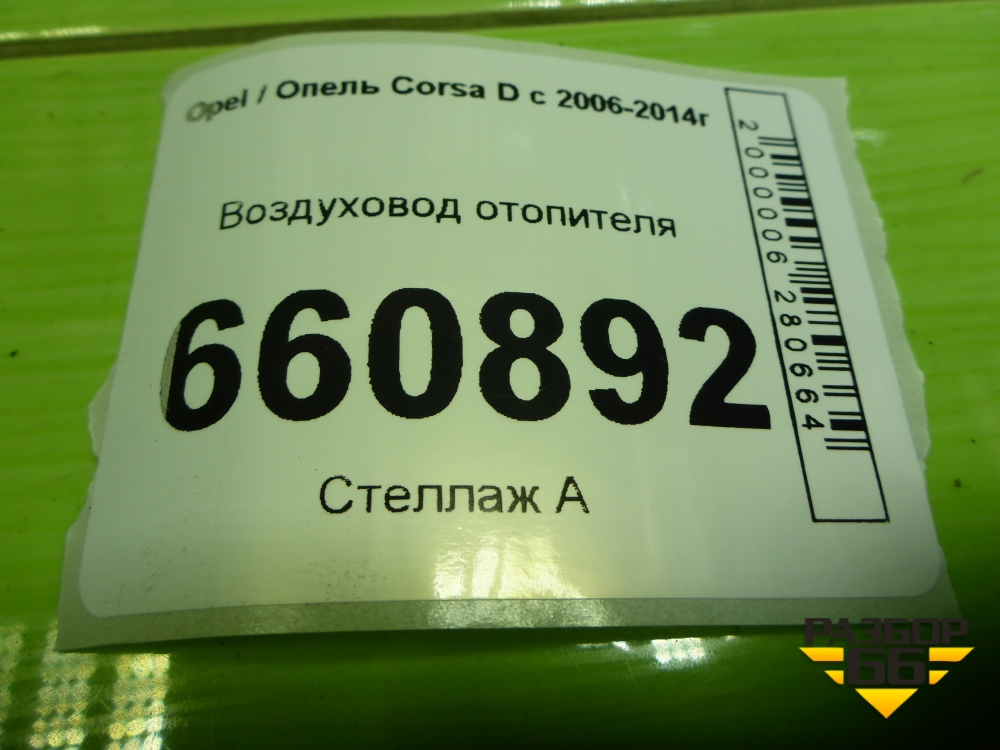 Воздуховод отопителя (13179974) для Opel Corsa D с 2006-2014г (Корса Д) в Краснодаре