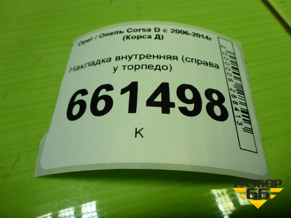 Накладка внутренняя (справа у торпедо) (13196699) для Opel Corsa D с 2006-2014г (Корса Д) в Краснодаре