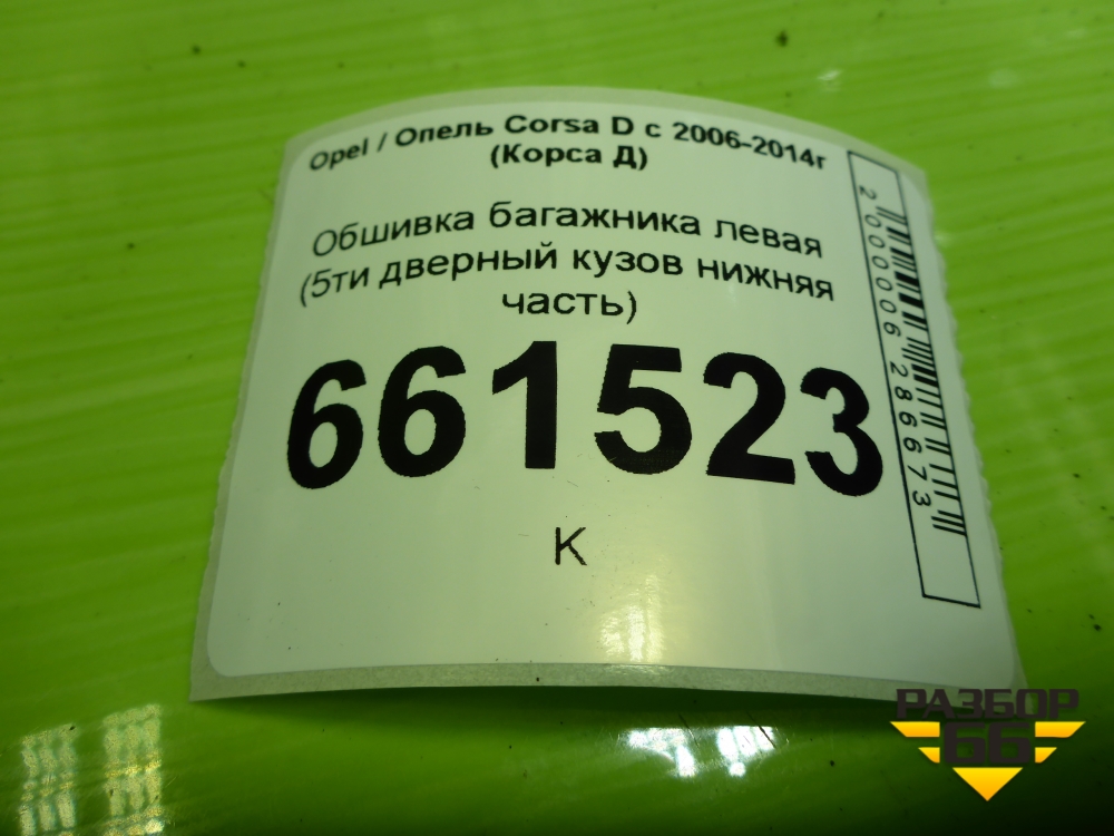 Обшивка багажника левая (5ти дверный кузов нижняя часть) (13230175) для Opel Corsa D с 2006-2014г (Корса Д) в Краснодаре
