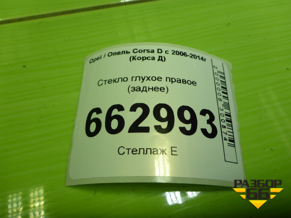 Стекло глухое правое (заднее 3-х дверный кузов) для Opel Corsa D с 2006-2014г (Корса Д) в Краснодаре