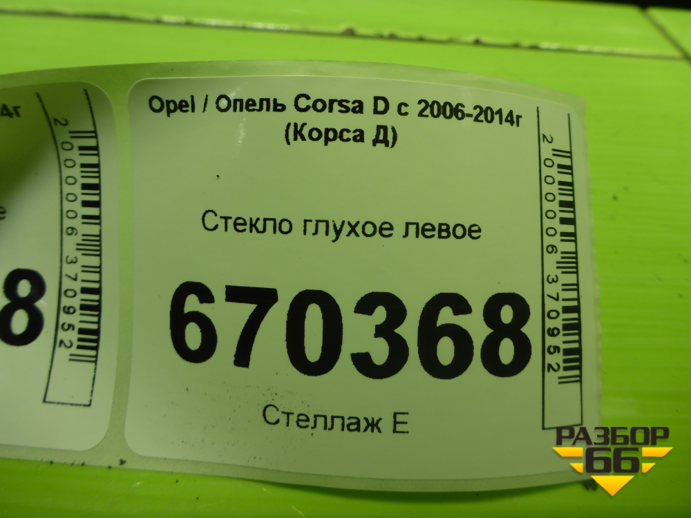 Стекло глухое левое (3-х дверный кузов) для Opel Corsa D с 2006-2014г (Корса Д) в Краснодаре