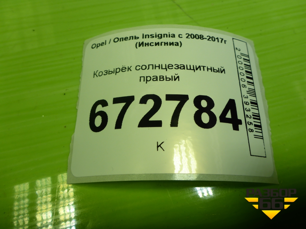 Козырёк солнцезащитный правый для Opel Insignia с 2008-2017г (Инсигниа) в Краснодаре