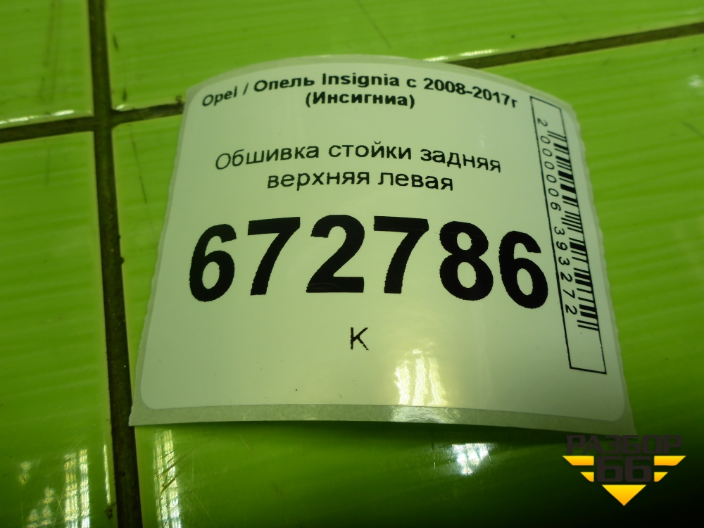 Обшивка стойки задняя верхняя левая (13221259) для Opel Insignia с 2008-2017г (Инсигниа) в Краснодаре