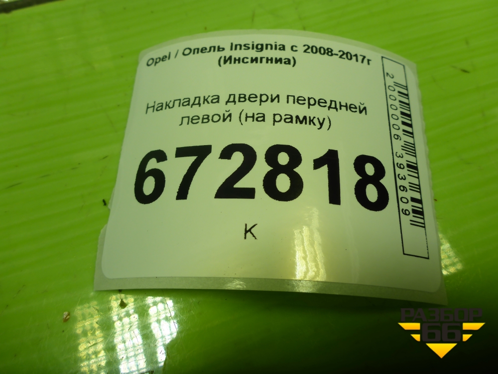 Накладка двери передней левой (на рамку) (013256885) для Opel Insignia с 2008-2017г (Инсигниа) в Краснодаре