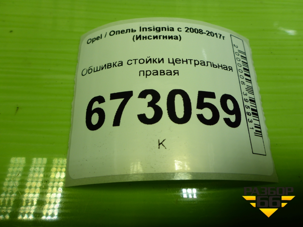 Обшивка стойки центральная правая (13221255) для Opel Insignia с 2008-2017г (Инсигниа) в Краснодаре