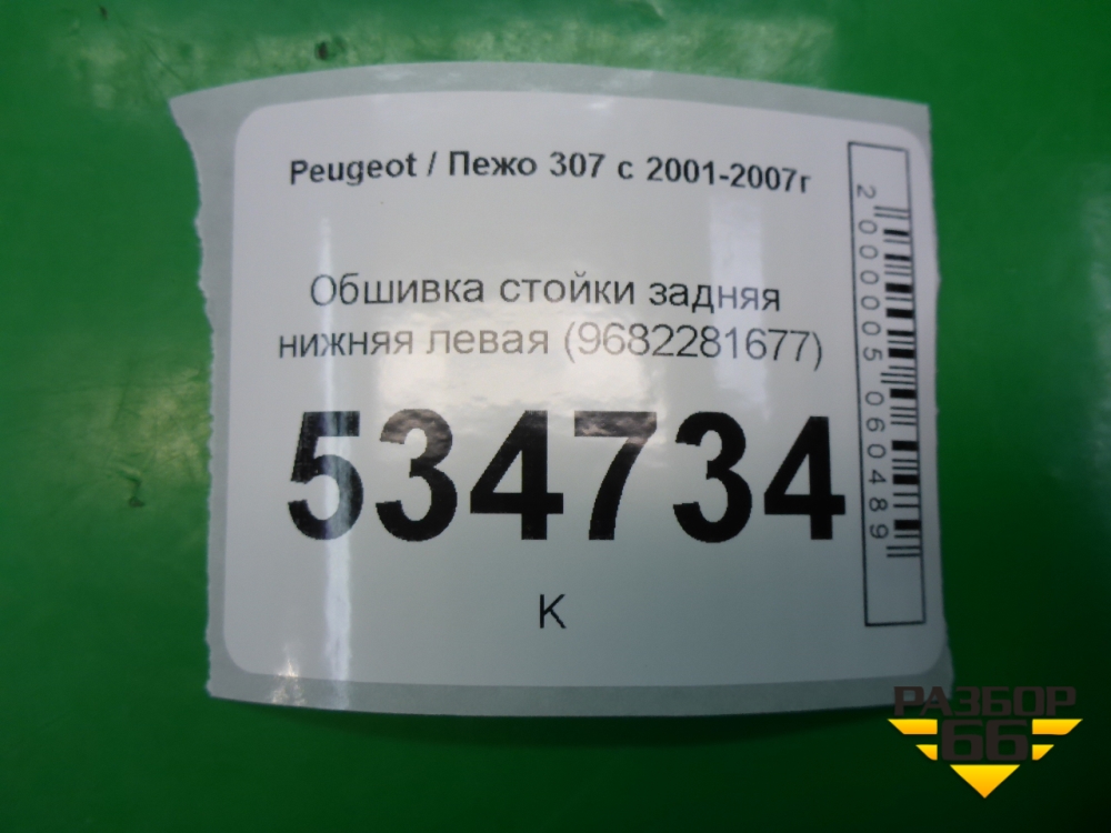 Обшивка стойки задняя нижняя левая (9682281677) для Peugeot 307 с 2001-2007г в Краснодаре