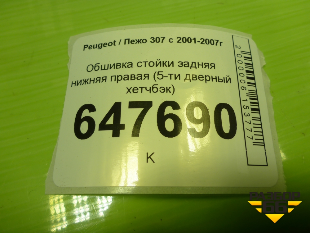 Обшивка стойки задняя нижняя правая (5-ти дверный хетчбэк) (9632751177) для Peugeot 307 с 2001-2007г в Краснодаре