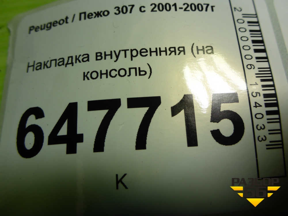 Накладка внутренняя (на консоль) (9651943877) для Peugeot 307 с 2001-2007г в Краснодаре