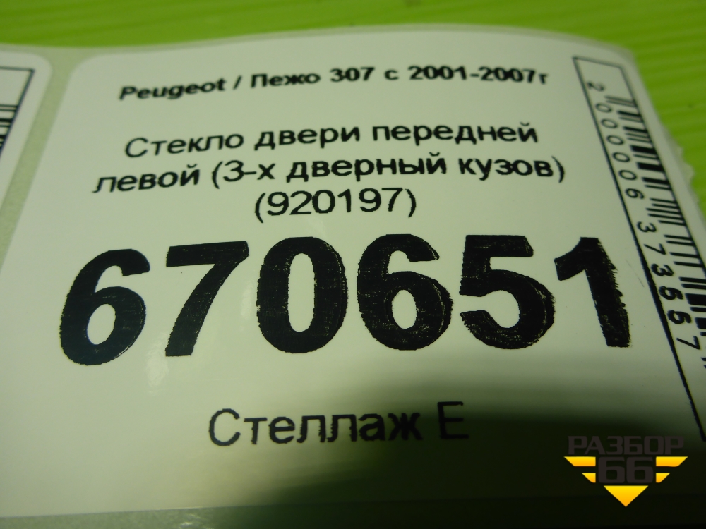 Стекло двери передней левой (3-х дверный кузов) (920197) для Peugeot 307 с 2001-2007г в Краснодаре