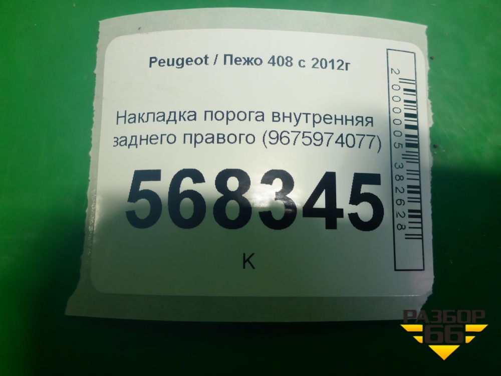 Накладка порога внутренняя заднего правого (9675974077) для Peugeot 408 с 2012г в Краснодаре