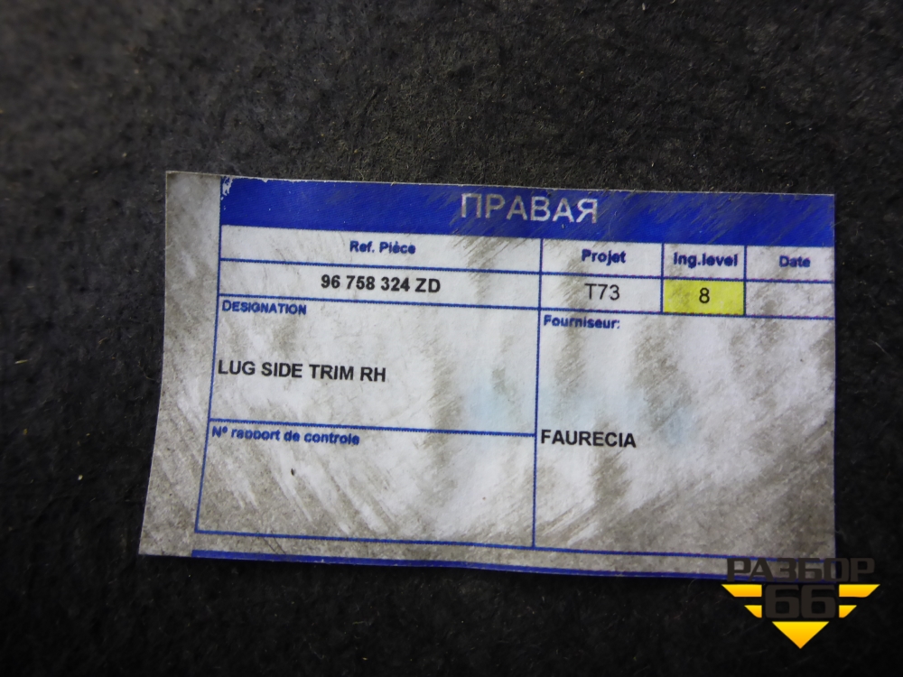 Обшивка багажника правая (96758324ZD) для Peugeot 408 с 2012г в Краснодаре