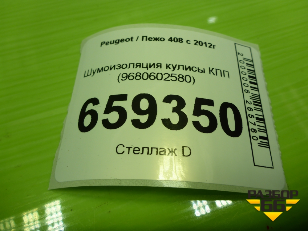 Шумоизоляция кулисы КПП (9680602580) для Peugeot 408 с 2012г в Краснодаре