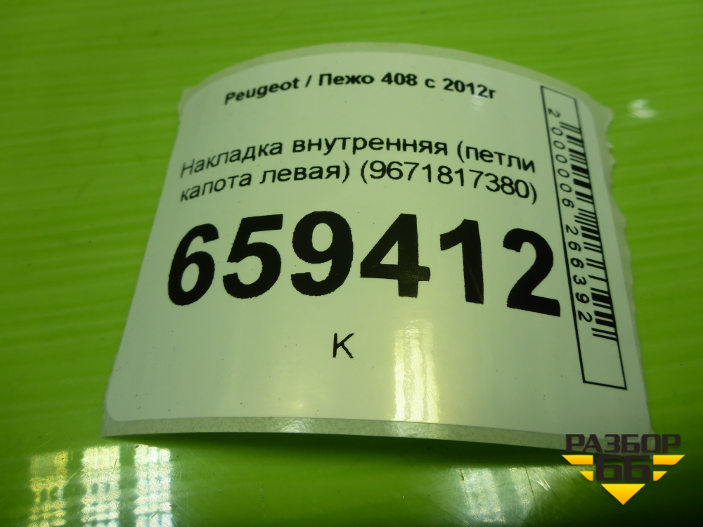 Накладка внутренняя (петли капота левая) (9671817380) для Peugeot 408 с 2012г в Краснодаре