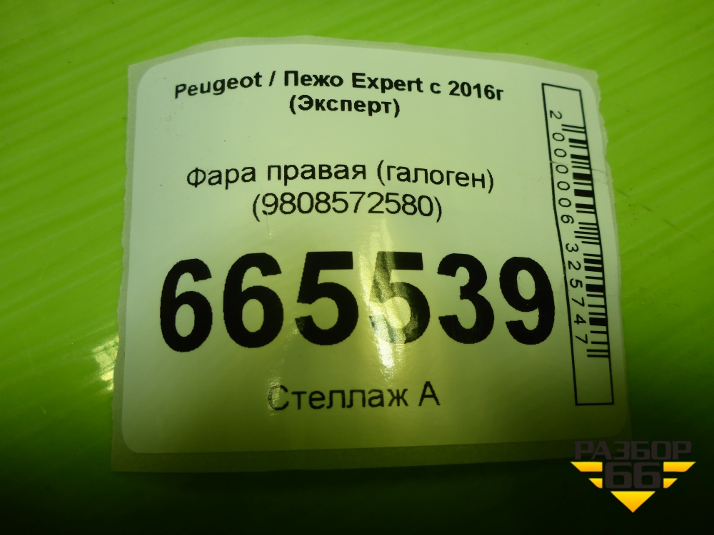 Фара правая (галоген) (9808572580) для Peugeot Expert с 2016г (Эксперт) в Краснодаре