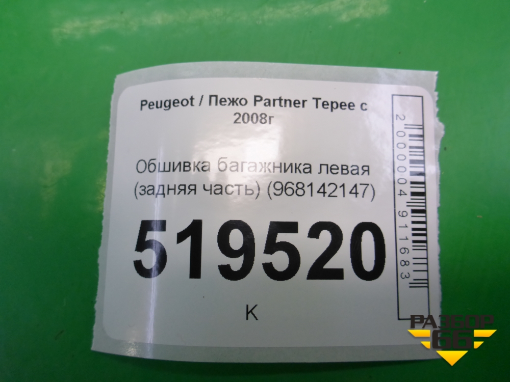 Обшивка багажника левая (задняя часть) (968142147) для Peugeot Partner Tepee с 2008г (Партнер Типпи) в Краснодаре