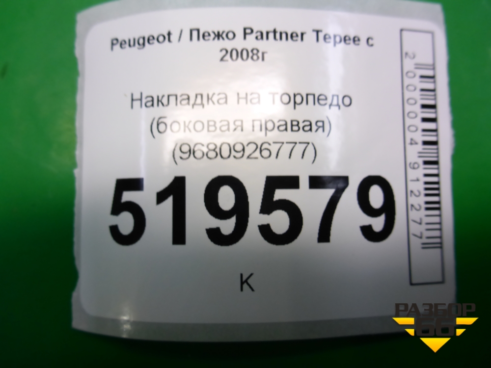 Накладка на торпедо (боковая правая) (9680926777) для Peugeot Partner Tepee с 2008г (Партнер Типпи) в Краснодаре