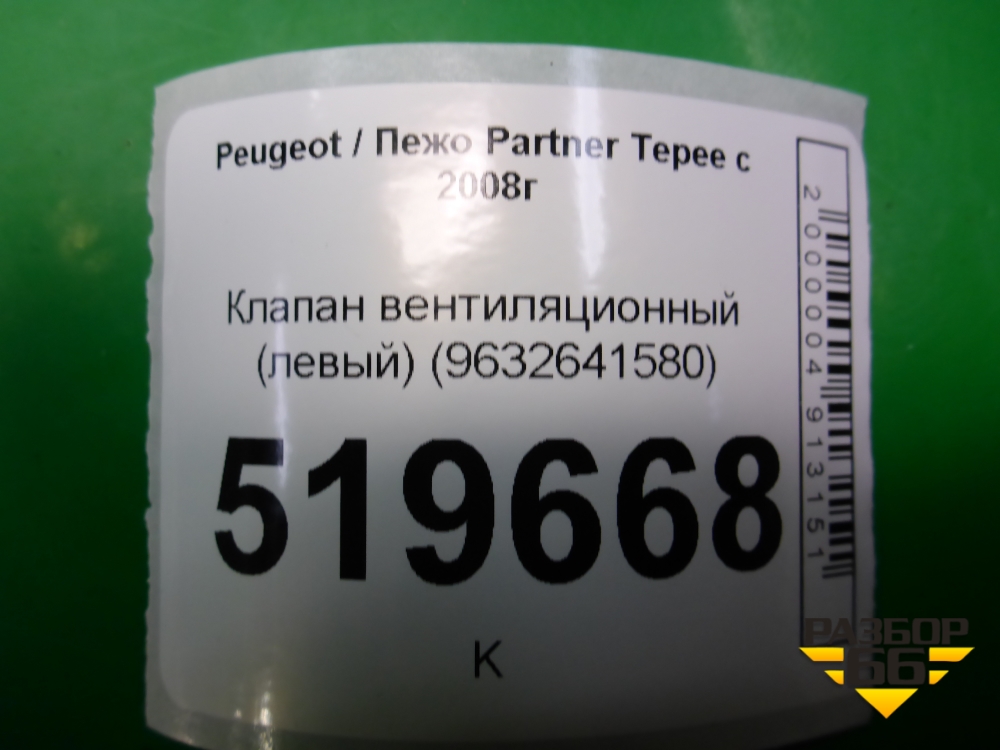 Клапан вентиляционный (левый) (9632641580) для Peugeot Partner Tepee с 2008г (Партнер Типпи) в Краснодаре